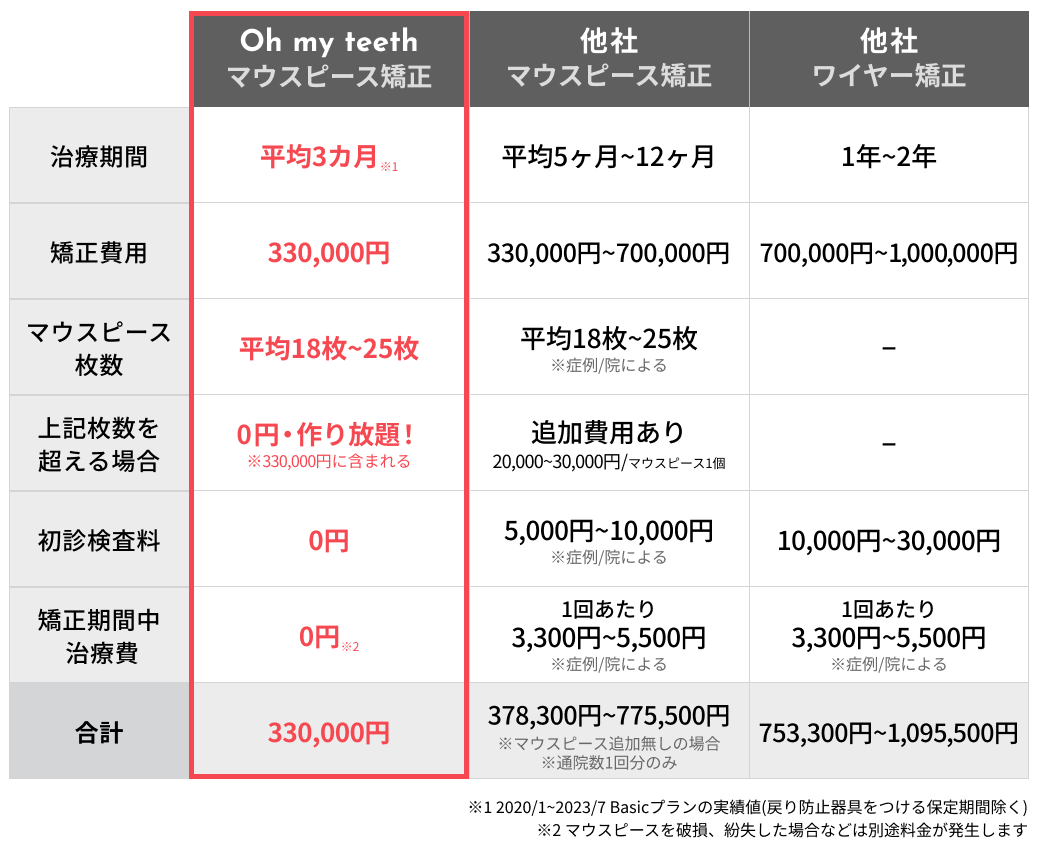”診察”や”マウスピース”の追加料金*は