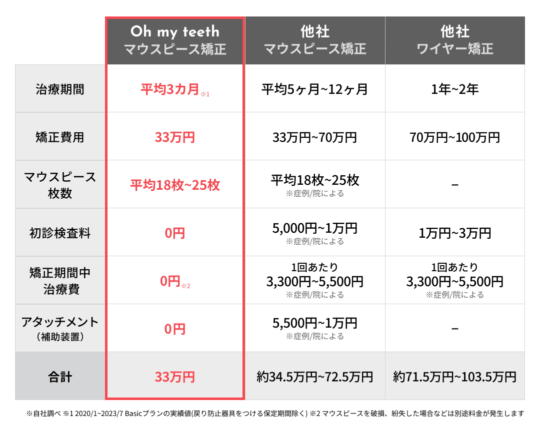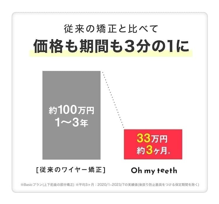 ※2020/1~2023/7 Basicプランの実績値(後戻り防止器具をつける保定期間を除く)